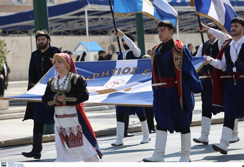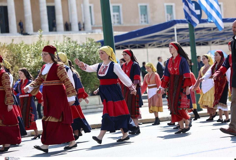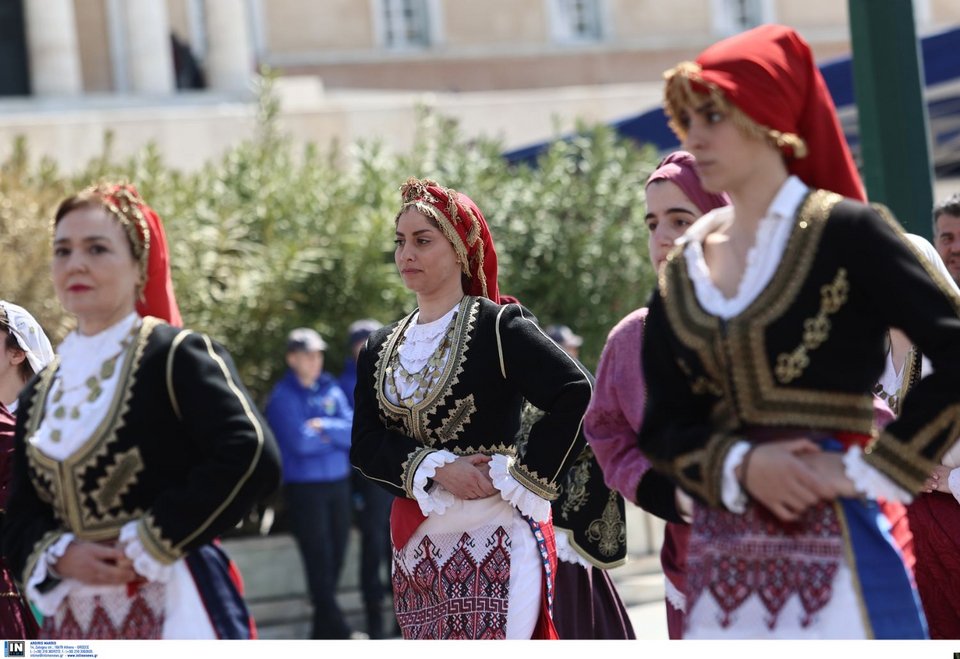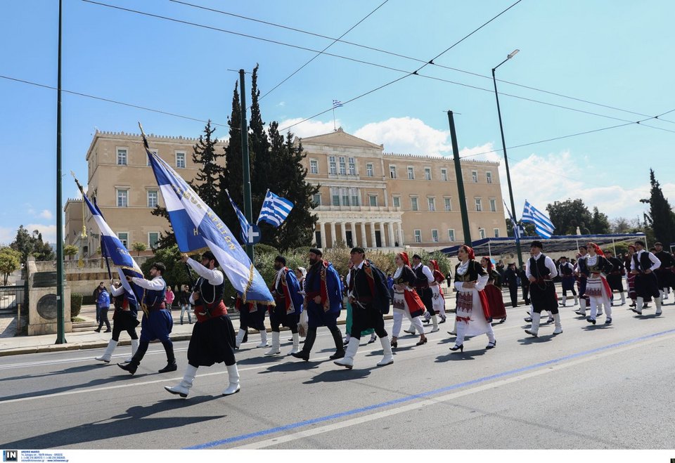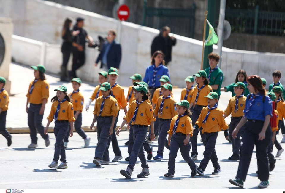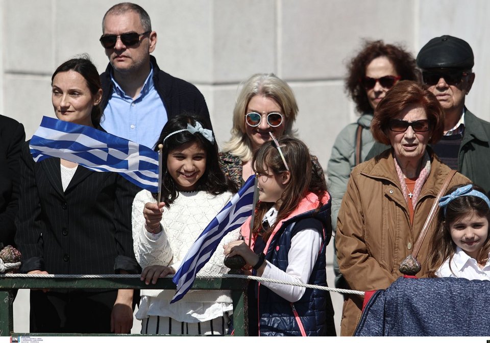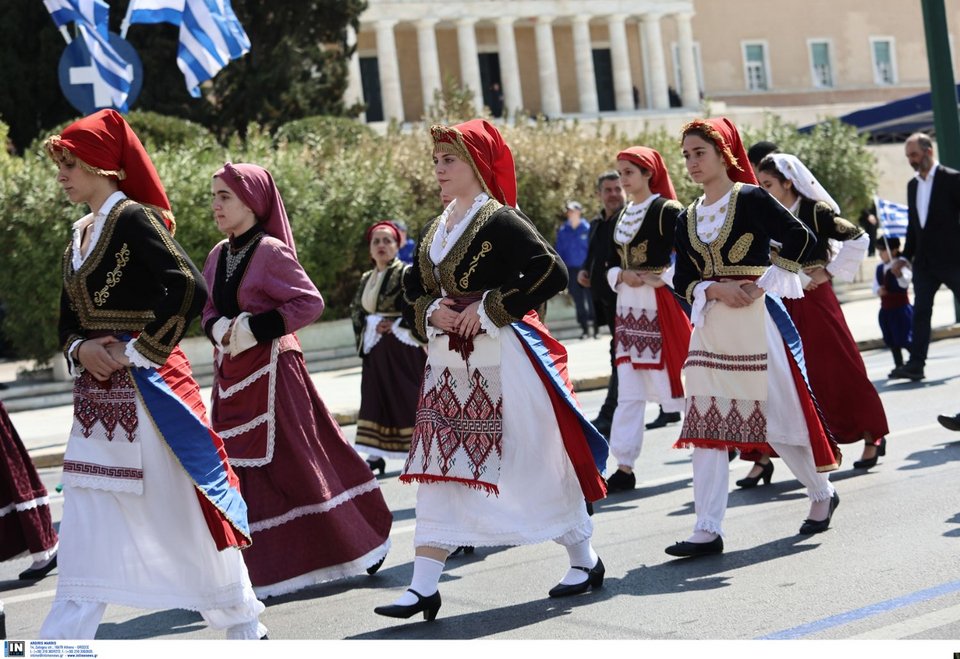 Ο καιρός ήταν σύμμαχος στη φετινή παρέλαση, με τους μαθητές να παρελαύνουν με τις στολές του σχολείου, τις καθιερωμένες μπλε-άσπρες φορεσιές, ή παραδοσιακές στολές για την 25η Μαρτίου.
