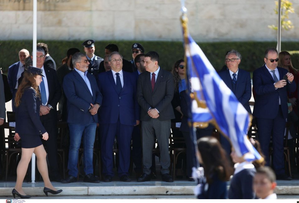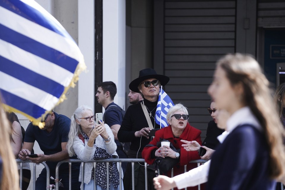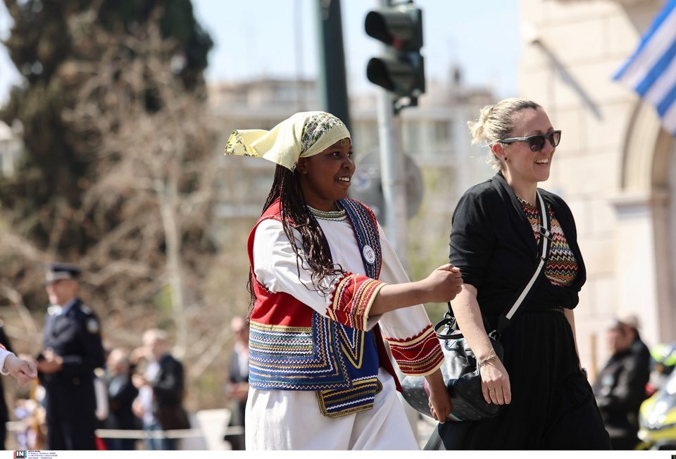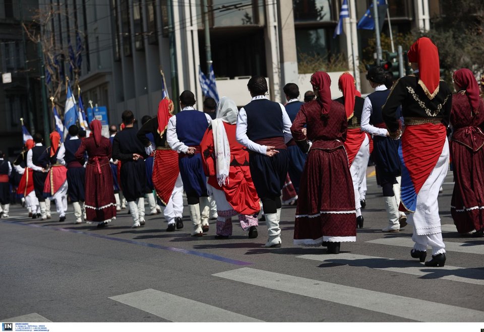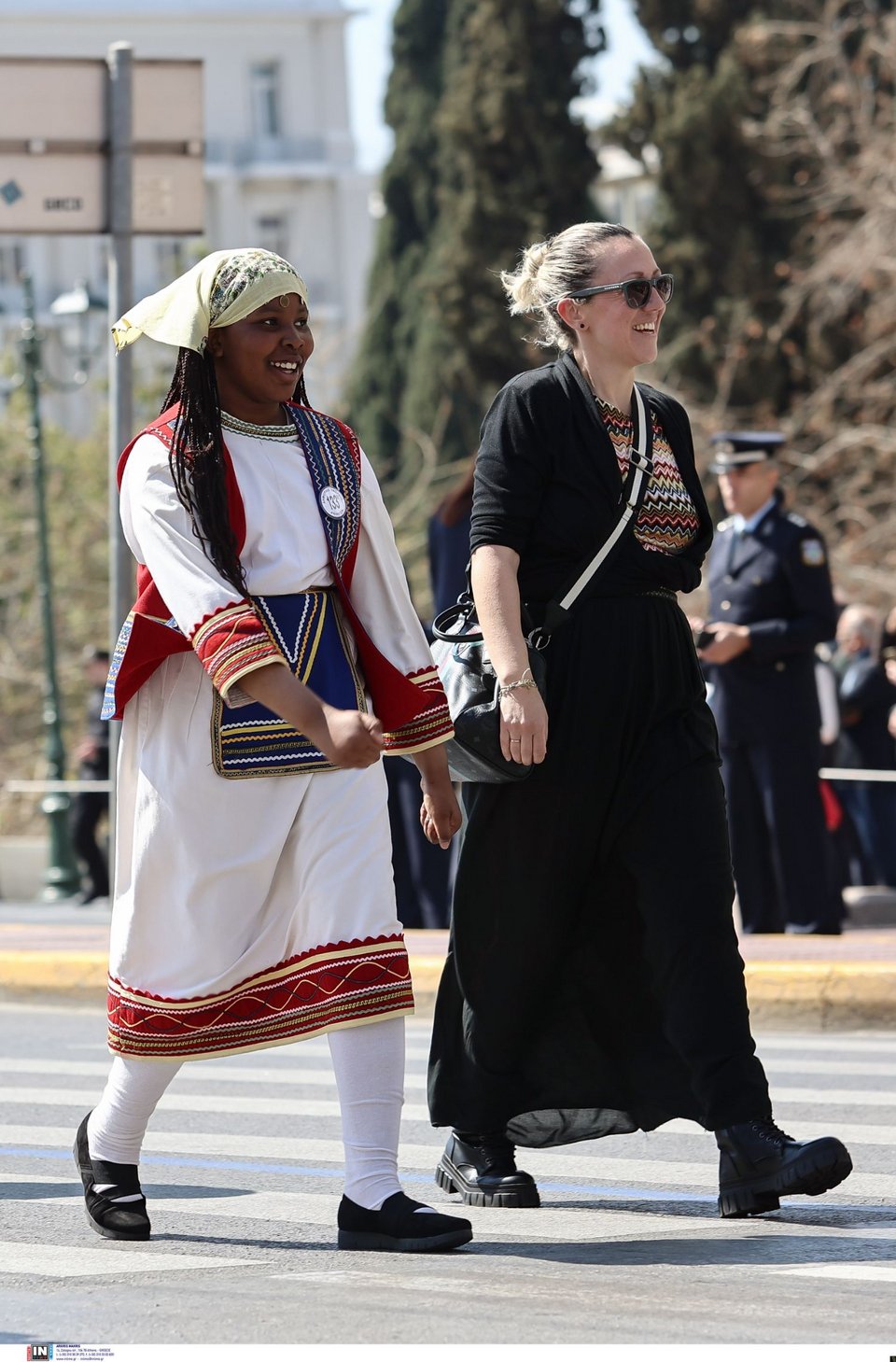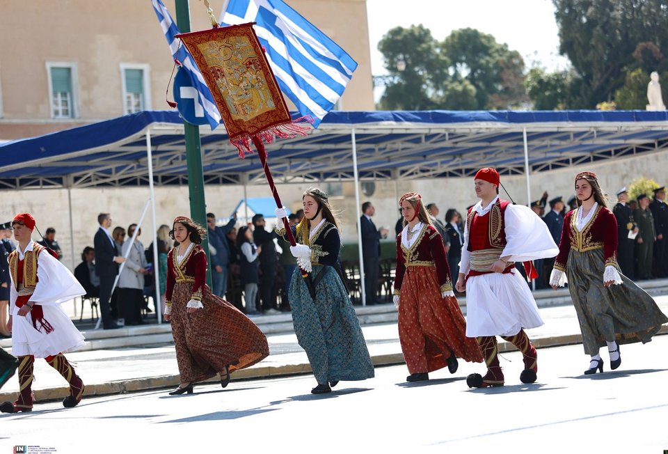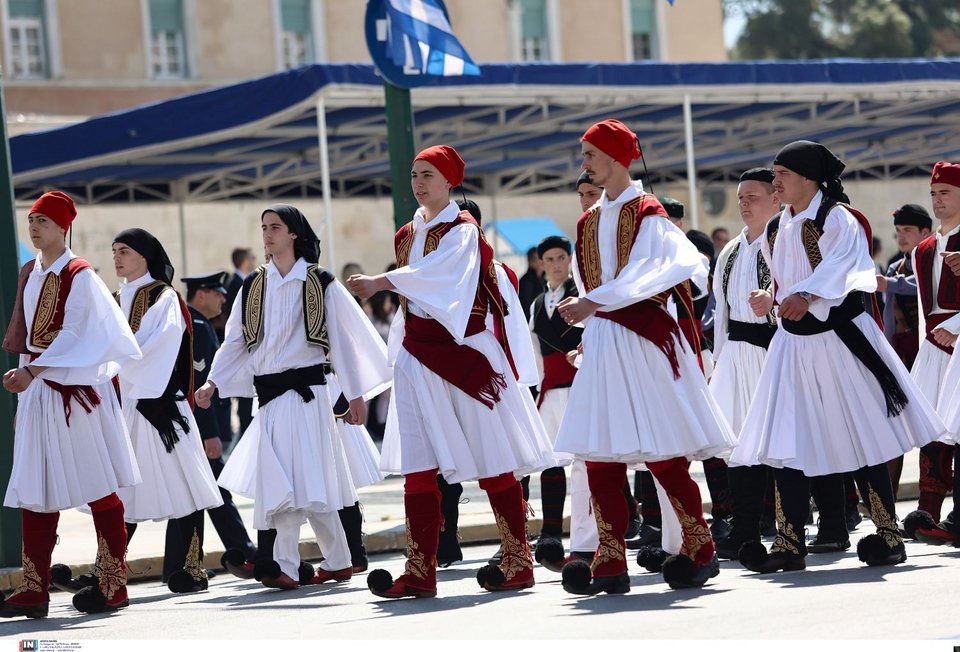 Ο καιρός ήταν σύμμαχος στη φετινή παρέλαση, με τους μαθητές να παρελαύνουν με τις στολές του σχολείου, τις καθιερωμένες μπλε-άσπρες φορεσιές, ή παραδοσιακές στολές για την 25η Μαρτίου.