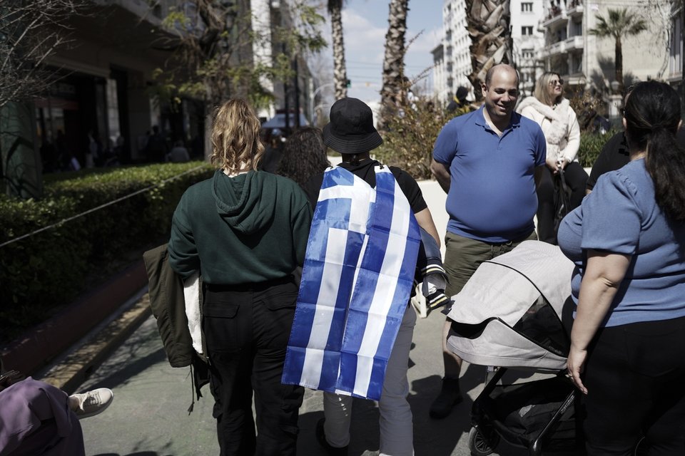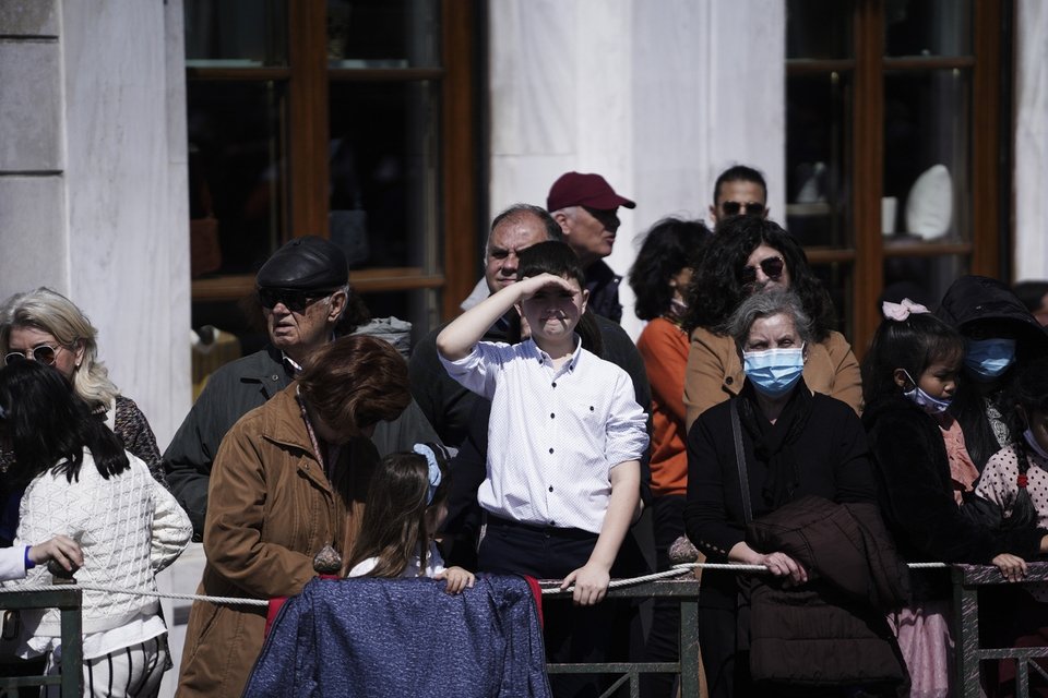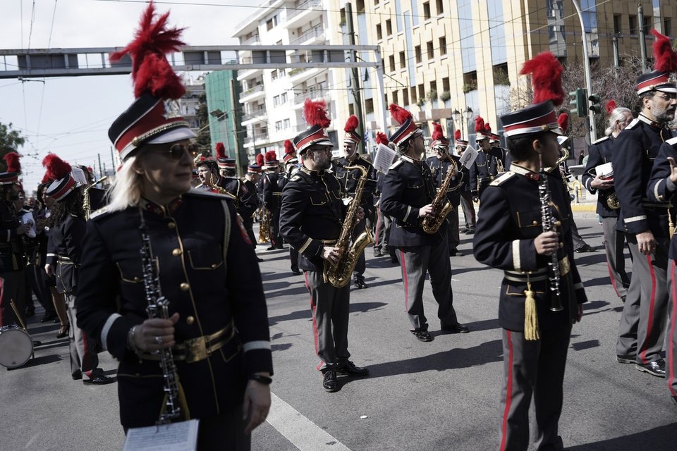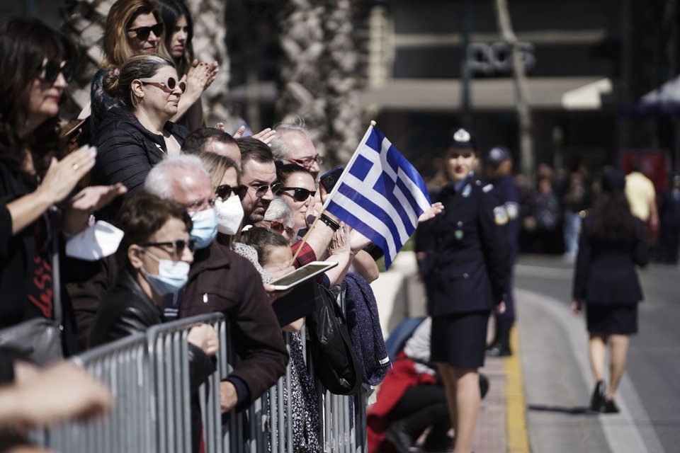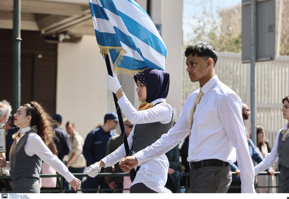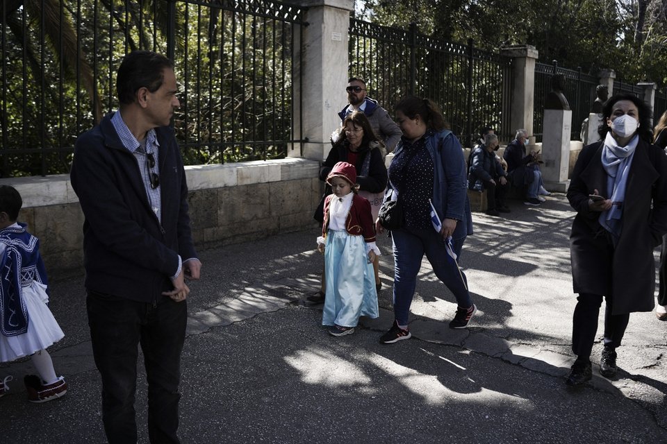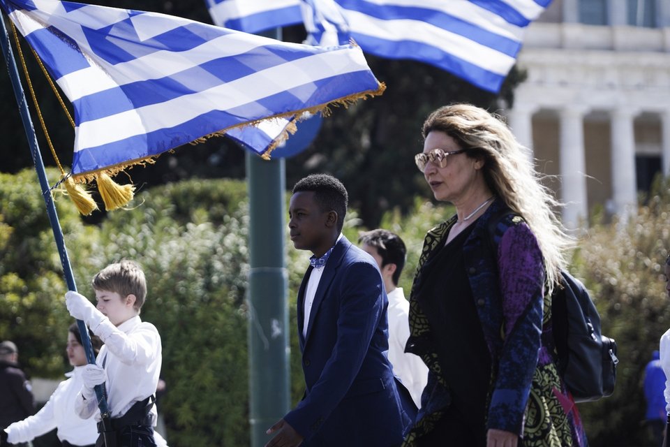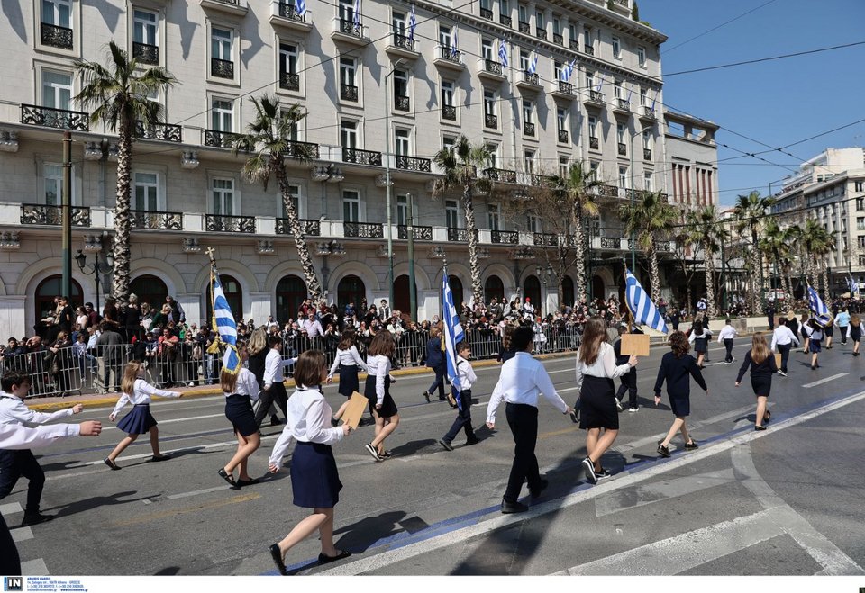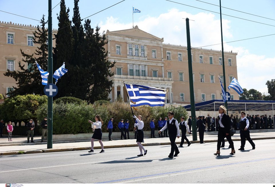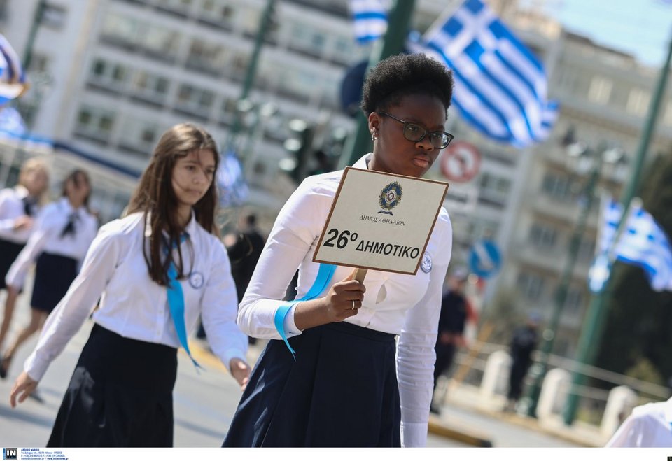 Μαθητές, δάσκαλοι και καθηγητές έδωσαν το «παρών» στο Σύνταγμα, στο κέντρο της Αθήνας, στη μαθητική παρέλαση για την 25η Μαρτίου, την πρώτη χωρίς κανένα περιοριστικό μέτρο.
