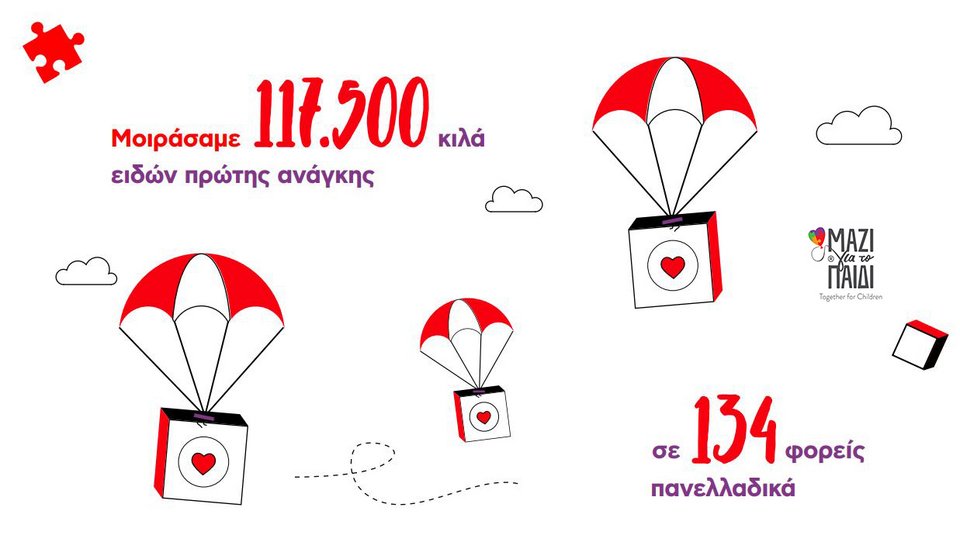 Το «Μαζί για το Παιδί» εξασφάλισε είδη πρώτης ανάγκης σε φορείς παιδικής προστασίας σε όλη την Ελλάδα ενώ στήριξε τα νοικοκυριά ευάλωτων οικογενειών με ανήλικα παιδιά. Συγκεκριμένα: