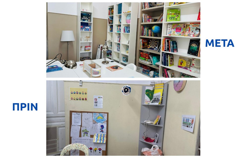 Οι χώροι εξοπλίστηκαν με φιλικά προς τα παιδιά έπιπλα και υλικά, δημιουργώντας ένα ευχάριστο και λειτουργικό περιβάλλον που ενθαρρύνει τη φιλαναγνωσία. Οι βιβλιοθήκες εμπλουτίστηκαν με πάνω από 600 τίτλους βιβλίων που καλύπτουν όλες τις ηλικιακές ομάδες, από την προσχολική μέχρι την εφηβική, καθώς και με laptops, εκπαιδευτικά παιχνίδια και μουσικά όργανα, προσφέροντας στα παιδιά πολλαπλά ερεθίσματα.