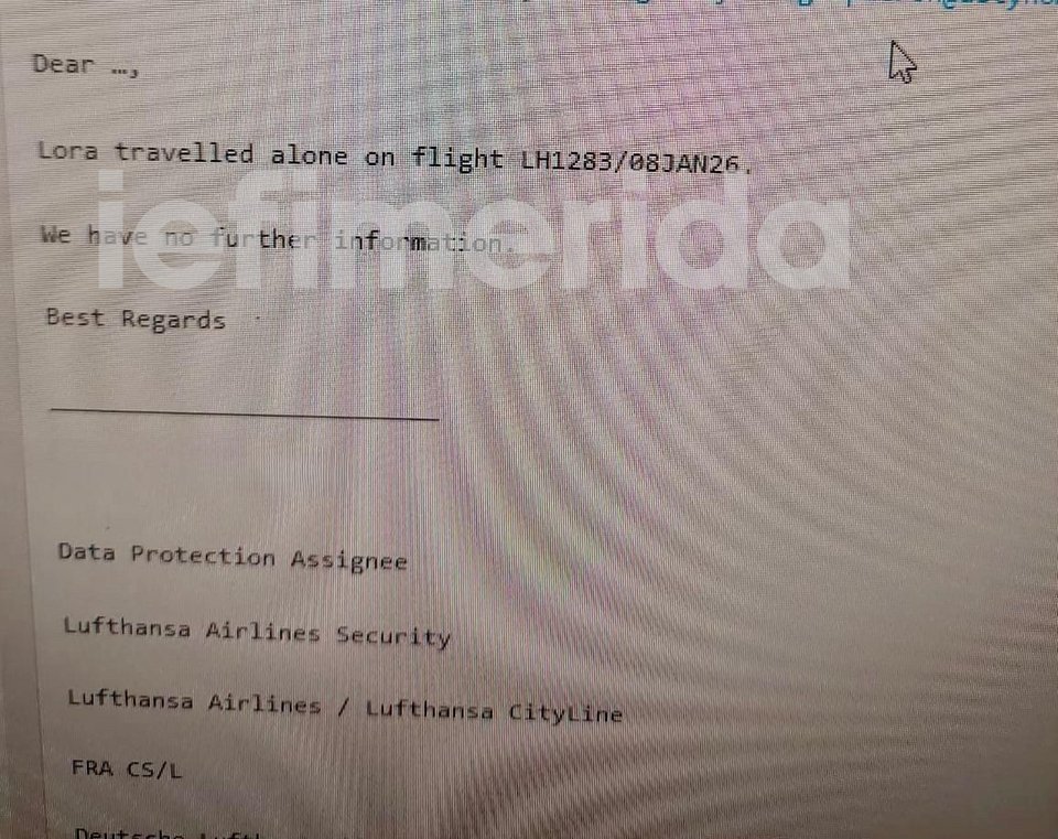 Με 14 λέξεις απάντησε η Lufthansa στο αίτημα για το αν η Λόρα ταξίδεψε στη Φρανκφούρτη: «Ήταν μόνη της...» [εικόνα] - iefimerida.gr