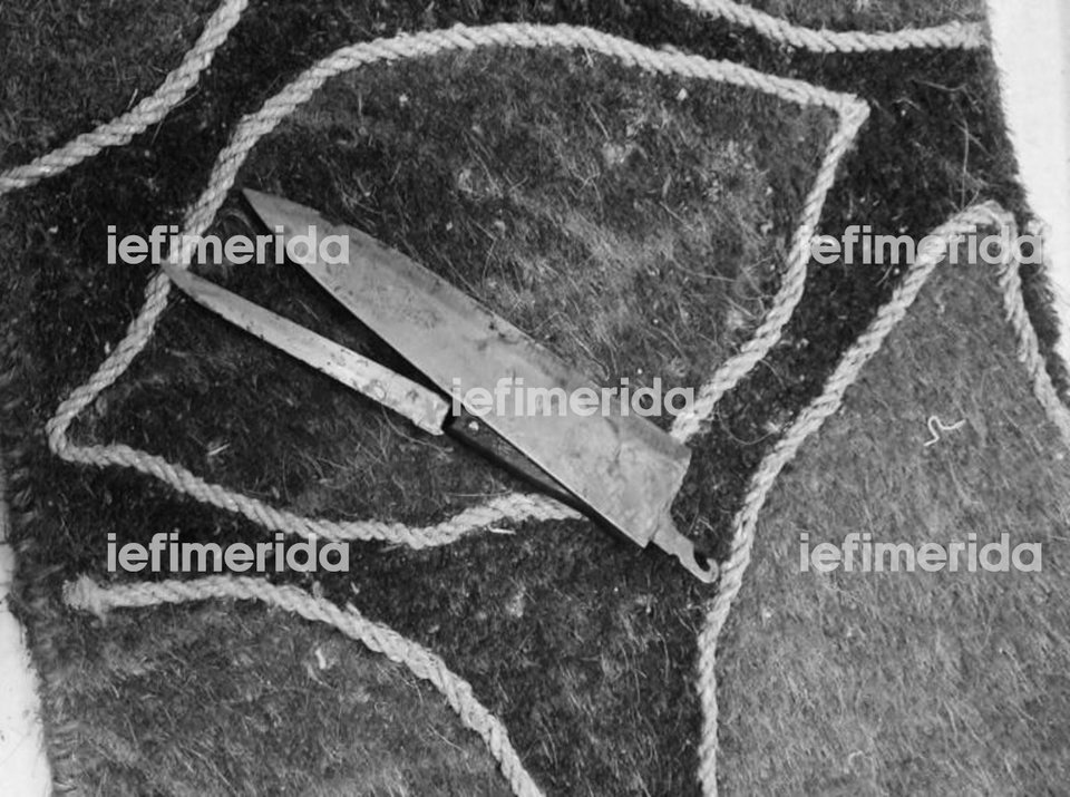Στη φωτογραφία απεικονίζονται τα δύο μαχαίρια, το ένα χωρίς λαβή, καθώς, σύμφωνα με πληροφορίες, έσπασε κατά τη διάρκεια της επίθεσης του 16χρονου στον 71χρονο.