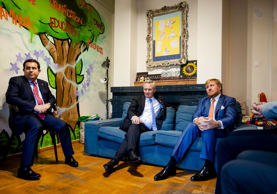 Στη συνέχεια ο βασιλιάς της Ολλανδίας με τον κ. Μηταράκη επισκέφθηκαν τη δομή φιλοξενίας ασυνόδευτων ανηλίκων προσφύγων «Νήσος» ενώ η βασίλισσα της Ολλανδίας με την κυρία Βούλτεψη μετέβησαν στη Δάφνη στον ομώνυμο ξενώνα ασυνόδευτων κοριτσιών.