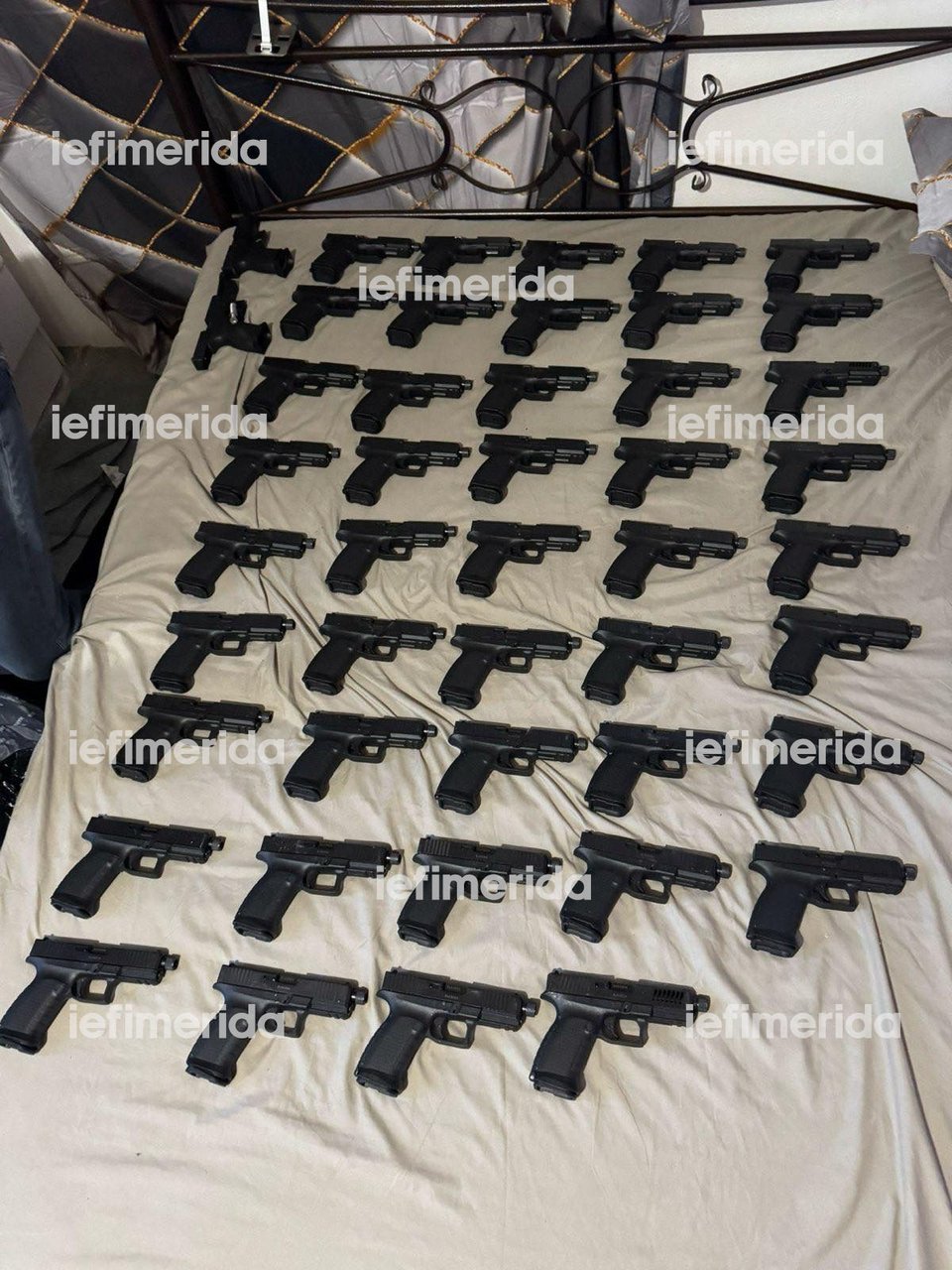 Σύμφωνα με πληροφορίες του iefimerida, τα όπλα που βρέθηκαν είναι όλα καινούργια πιστόλια μάρκας Glock. Τα 48 βρέθηκαν σε δώμα σε διαμέρισμα στην οδό Σκιάθου, στο κέντρο της Αθήνας.
