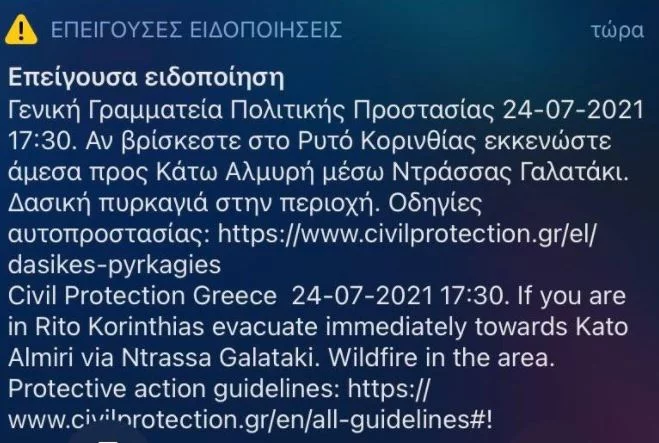 Μήνυμα του 112 για εκκένωση του οικισμού Ρυτό
