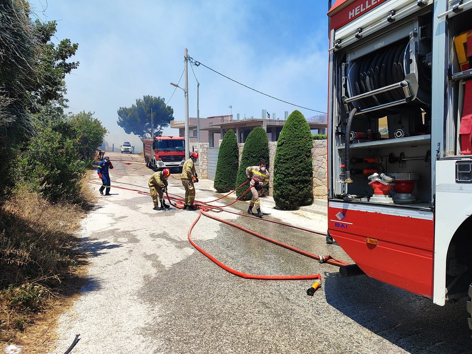 Στη φωτιά επιχειρούν 55 πυροσβέστες με 20 οχήματα, 2 ομάδες πεζοπόρων, 6 αεροσκάφη και 4 ελικόπτερα.