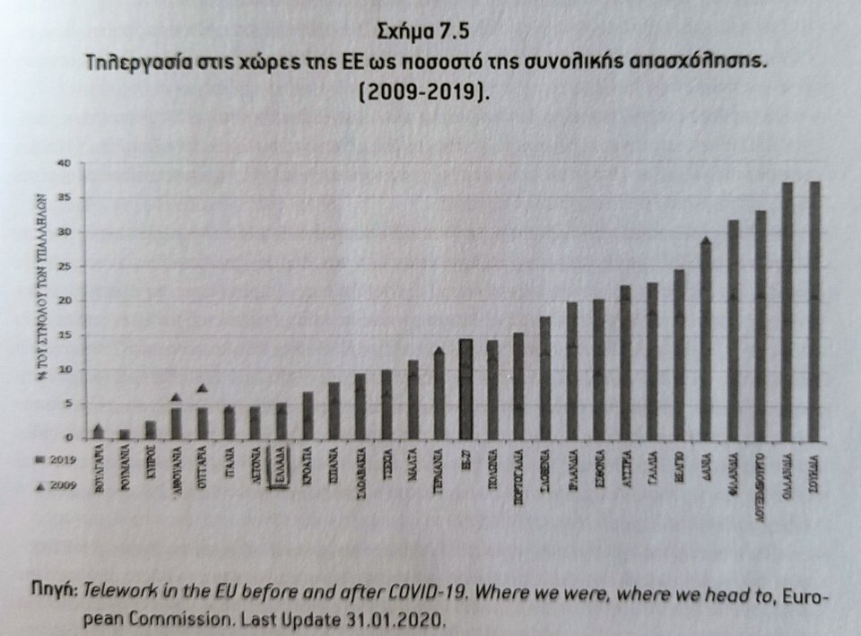 Η τηλεργασία επιβλήθηκε στους εργασιακούς χώρους. Το διαδίκτυο μπήκε στη ζωή ακόμη και των πιο… ανεπίδεκτων χειριστών κομπιούτερ. Από τον Μάρτιο του 2020 εκατομμύρια εργαζομένων ανά τον κόσμο βρέθηκαν να πειραματίζονται με την παραγωγικότητά τους δια της οθόνης του υπολογιστή… Στην Ελλάδα, τον Νοέμβριο του 2020 εργάζονταν με τηλεργασία 280.000 άνθρωποι. Μελέτη των οικονομολόγων του Harvard προβλέπει ότι όταν κάποτε κλείσει το κεφάλαιο «πανδημία», τουλάχιστον για τρεις ημέρες την εβδομάδα ένας στους έξι εργαζόμενους θα εξακολουθεί να παρέχει υπηρεσίες από το σπίτι του. Άλλη μελέτη, πάντως, αποκαλύπτει ότι το ένα τρίτο των εργαζομένων (υπάλληλοι γραφείου, ανώτερα στελέχη κ.α.) έχουν πλέον τη δυνατότητα να εργάζονται διαδικτυακά στο 100% του εργασιακού τους χρόνου. Το δεύτερο τρίτο (σχεδιαστές μόδας, ερευνητές, μεσίτες κ.α.) για περισσότερο από το μισό του εργασιακού τους χρόνου και το τελευταίο τρίτο (γιατροί, πιλότοι κ.λπ.) καθόλου.