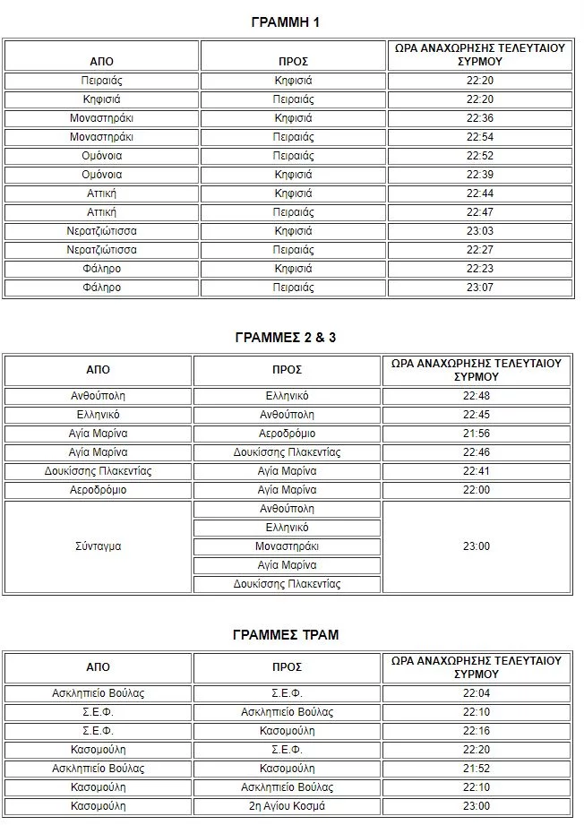Τα τελευταία δρομολόγια στις γραμμές 1, 2 και 3 σήμερα:
