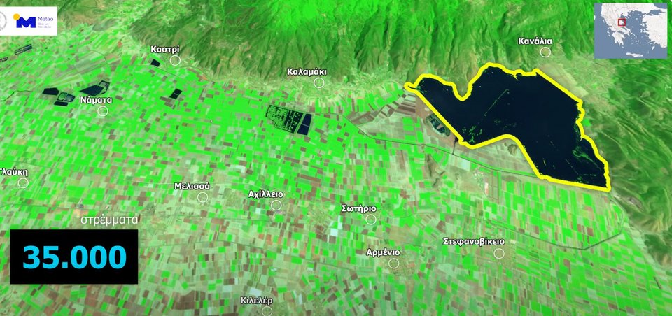 Στο παρακάτω βίντεο (animation) παρουσιάζεται η εξέλιξη των πλημμυρισμένων εκτάσεων στην περιοχή της λίμνης Κάρλας, από την κακοκαιρία «Daniel» που έπληξε με ιδιαίτερη σφοδρότητα την Θεσσαλία. Οι πλημμύρες ξεκίνησαν από τις 5/9/23 στην περιοχή, καθώς αυξανόταν η στάθμη του Πηνειού (και των παραποτάμων του).