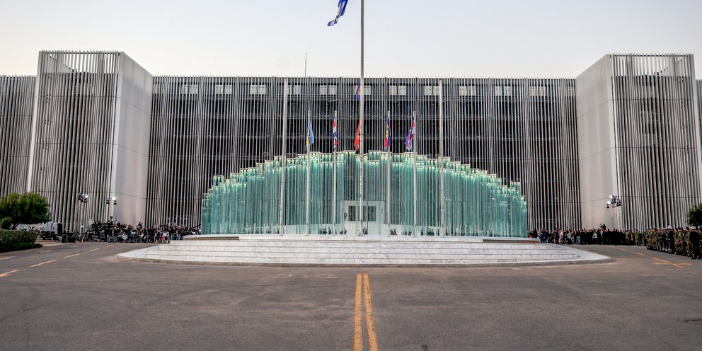 Η νέα πρόσοψη Υπουργείου Εθνικής Άμυνας, έκτασης 13.500 τ.μ., επενδύεται με κατακόρυφα λευκά σκίαστρα αλουμινίου, τα οποία συνδυάζουν υψηλή αισθητική και βιοκλιματικό σχεδιασμό, προσφέροντας φυσική σκίαση και βελτιωμένη ενεργειακή απόδοση. Επισημαίνεται, επίσης, ότι τα σκίαστρα είναι κατασκευασμένα από ελληνικό αλουμίνιο που παρήχθη από ελληνικό Βωξίτη και κατασκευάστηκε στο εργοστάσιο “Αλουμίνιον της Ελλάδος” της METLEN».
