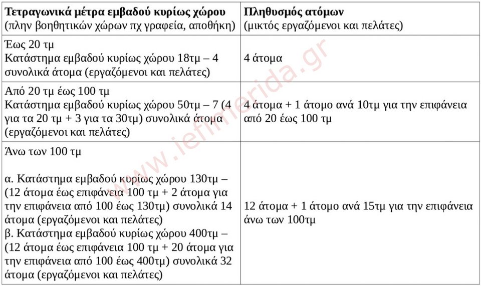 - Απόσταση 2 μέτρων ανά άτομο και ειδικότερα στο λιανικό εμπόριο: