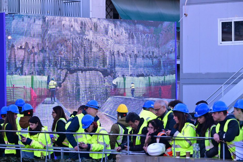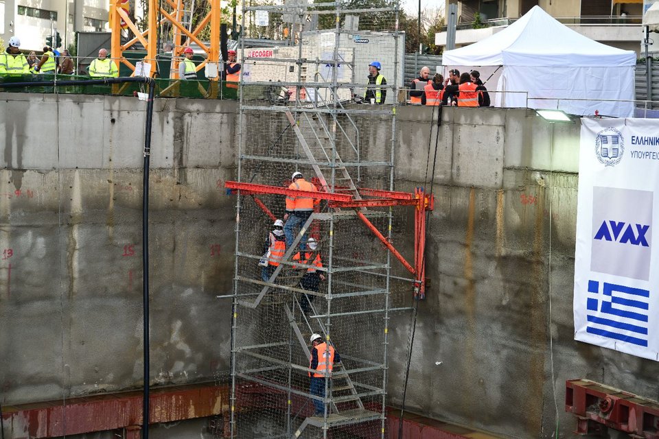 Η «Αθηνά», ένας από τους δύο μετροπόντικες της Γραμμής 4 του μετρό, έφτασε στον τελικό της προορισμό στο φρέαρ Ευαγγελισμού.