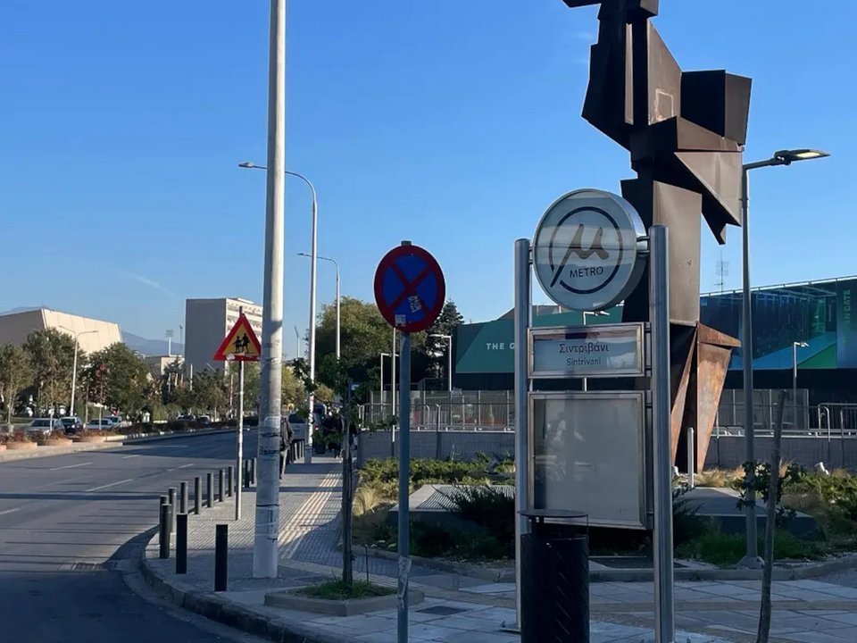 Το πεζογραφικό καλλιγραφικό «μ» βρίσκεται από το πρωί της Τρίτης έξω από τους 13 σταθμούς του μετρό, στους οποίους γίνονται οι τελευταίες εργασίες.