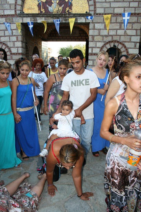 Πολλοί από αυτούς πηγαίνουν να εκπληρώσουν το τάμα τους. Εκπληκτικές οι εικόνες: Κάποιοι έχουν κάνει τάμα να πάνε μπουσουλώντας, άλλοι, φθάνοντας στον περίβολο, πέφτουν και σέρνουν το σώμα τους στο έδαφος μέχρι το ναό.