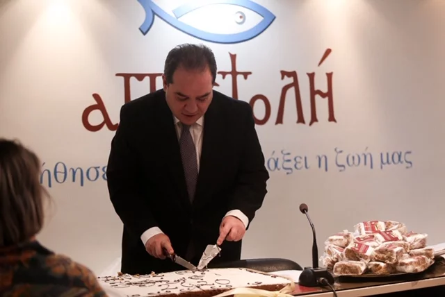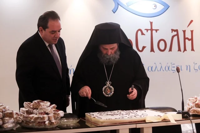 Την Πρωτοχρονιάτικη Βασιλόπιτα του Φιλανθρωπικού Οργανισμού «ΑΠΟΣΤΟΛΗ» της Ιεράς Αρχιεπισκοπής Αθηνών ευλόγησε, στα Κεντρικά Γραφεία της Διοίκησης, ο Σεβασμιώτατος Μητροπολίτης Ιωαννίνων κ. Μάξιμος, παρουσία του Γενικού Διευθυντή του Οργανισμού κ. Κωνσταντίνου Δήμτσα και όλου του προσωπικού των υπηρεσιών και δομών της «ΑΠΟΣΤΟΛΗΣ».