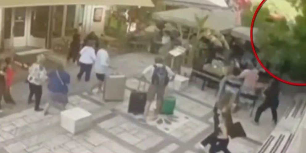 Εν τω μεταξύ, βίντεο από κάμερα ασφαλείας έχει αποτυπώσει τη στιγμή που ο κορμός του δέντρου κόβεται στα δύο και καταλήγει πάνω στα τραπεζοκαθίσματα στην πλατεία Αγίας Ειρήνης. Οι πελάτες του μαγαζιού την τελευταία στιγμή απομακρύνονται, όμως η 53χρονη καταπλακώνεται από τα κλαδιά. Αμέσως όσοι βρίσκονται στο σημείο τρέχουν να τη βοηθήσουν και απομακρύνουν το παιδί της.