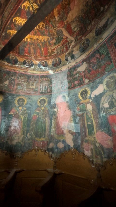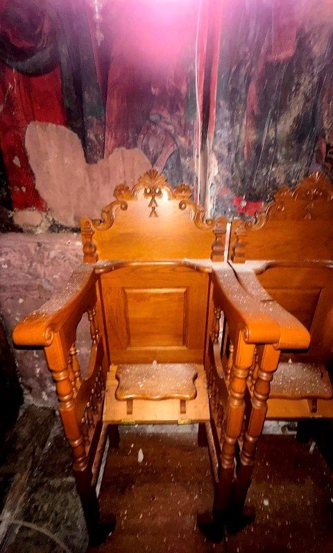 Σοβάδες έπεσαν πάνω στην Αγία Τράπεζα, αλλά και στα στασίδια του Ναού. Είναι η πολλοστή φορά που λαβώνεται το Μοναστήρι τα τελευταία χρόνια, ενώ το Καθολικό παρέμενε κλειστό για μια πενταετία λόγω παλαιότερου σεισμού.