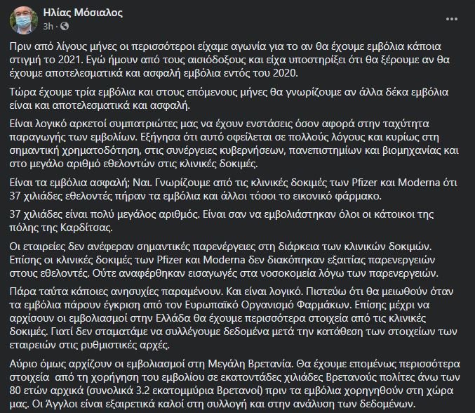 Η ανάρτηση Μόσιαλου για το εμβόλιο
