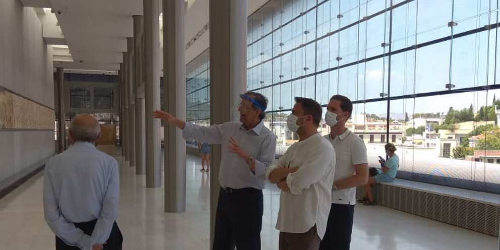 Στις αποκλειστικές φωτογραφίες του iefimerida φαίνονται οι κ.κ. Σαμαράς και Παντερμαλής να ξεναγούν τον πρωθυπουργό τους κ.κ. Μπετέλ και Ντεστενέ στους χώρους του Μουσείου και να ποζάρουν όλοι μαζί για τις αναμνηστικές φωτό. Φυσικά, όλοι τους φορούσαν τα απαραίτητα καλύμματα προσώπου, τα οποία ούτως ή άλλως ήταν υποχρεωτικά για το Μουσείο της Ακρόπολης πριν επιβληθεί χθες η χρήση τους σε όλους τους κλειστούς χώρους.