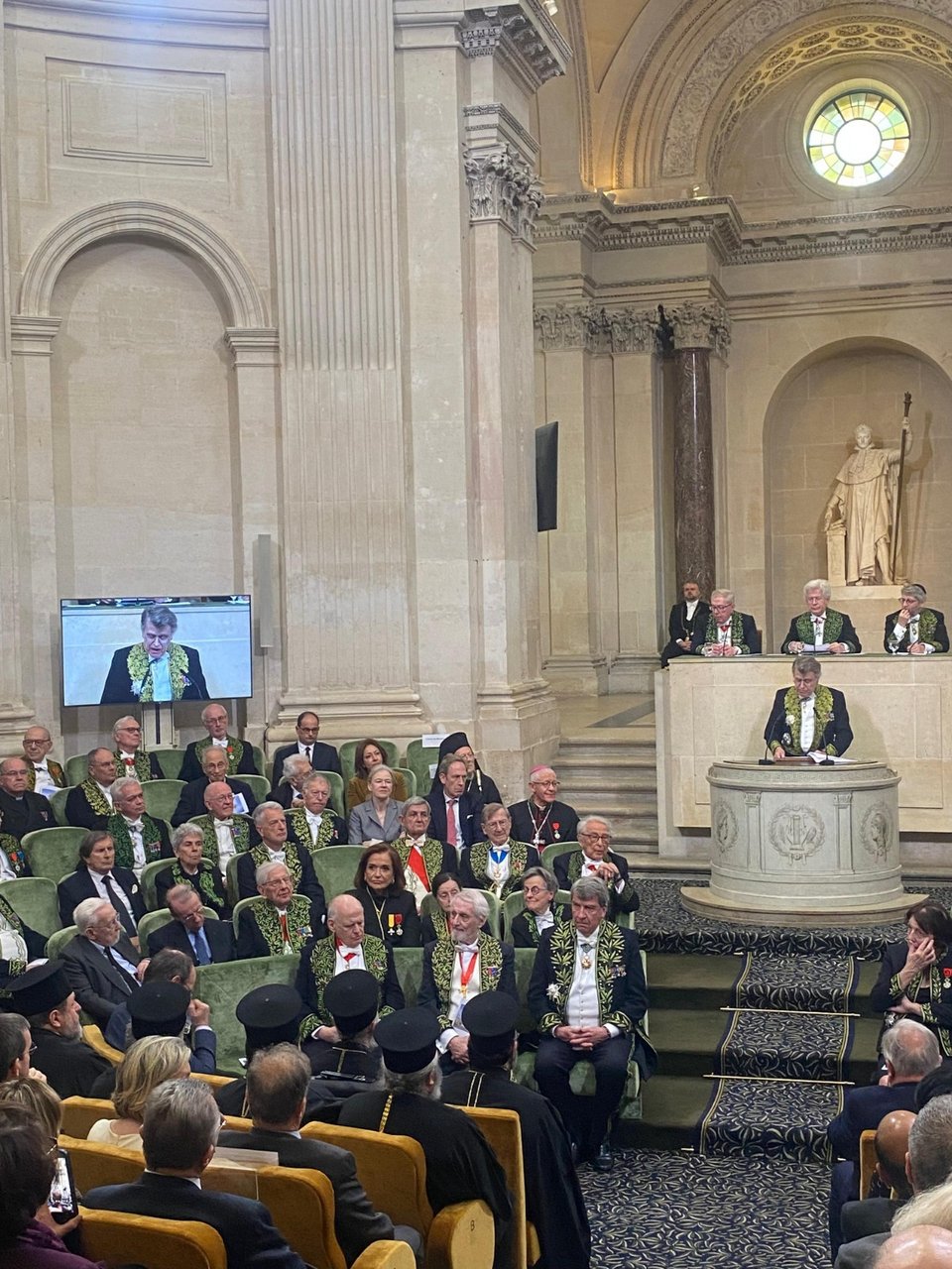 Η πρώην υπουργός παρέστη στην υψηλού συμβολισμού και μεγάλης ακτινοβολίας εκδήλωση, ως επίτιμη προσκεκλημένη, καθώς έχει εκλεγεί ως αντεπιστέλλον μέλος της Γαλλικής Ακαδημίας από το 2008 και είναι η μόνη ξένη γυναίκα της Ακαδημίας.