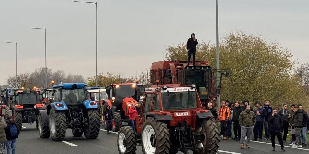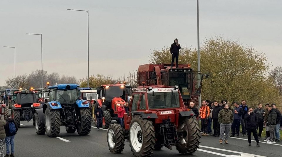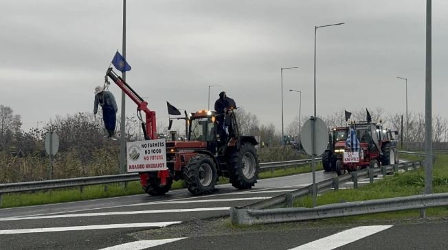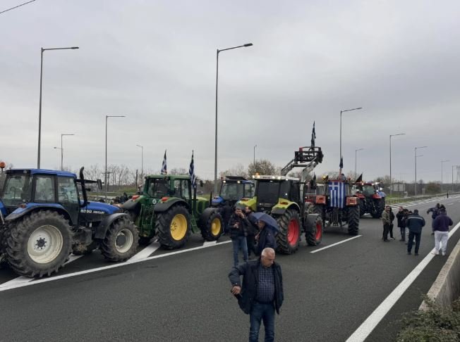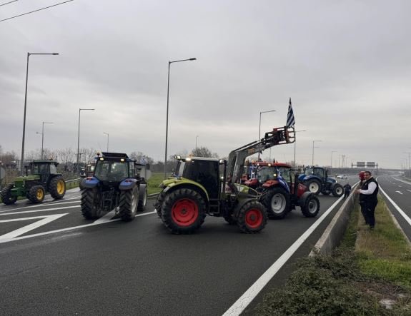 Αγρότες της Ημαθίας απέκλεισαν την Εγνατία Οδό στον κόμβο του Νησελίου, παρατάσσοντας τα τρακτέρ τους στο ρεύμα προς Βέροια.