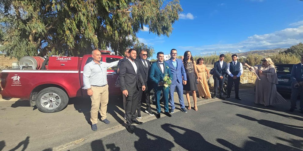 To περασμένο Σάββατο στη Μύκονο, ένας γάμος και μια βάφτιση έγιναν το απόλυτο talk of the island, καθώς συνδύασαν παράδοση και πυροσβεστικά οχήματα.