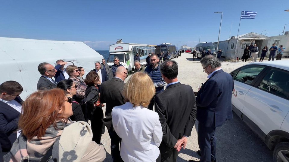 Οι Πρέσβεις ξεναγήθηκαν στους χώρους από τον Διοικητή του ΚΥΤ Δημήτρη Καντεμνίδη και ενημέρωθηκαν για τις διαδικασίες καταγραφής, τις υποδομές, τις συνθήκες φιλοξενίας των αιτούντων άσυλο. Ενημερώθηκαν μάλιστα και για τις διαδικασίες που προβλέπονται για τους επιζώντες του ναυαγίου οι οποίοι εγκαταστάθηκαν αμέσως στο Κέντρο Υποδοχής και έχουν ψυχολογική υποστήριξή και φροντίδα από κοινωνικούς λειτουργούς και οργανώσεις.