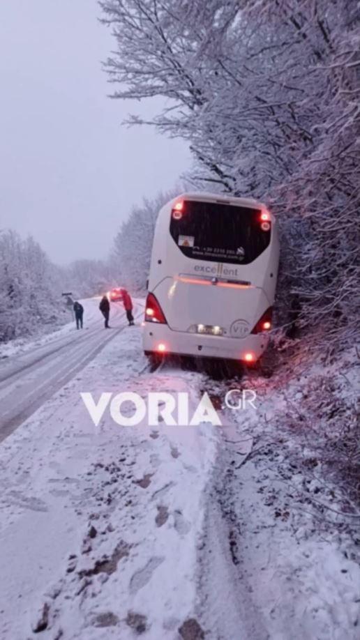 Όπως καταγγέλλουν επιβάτες, ο δρόμος δεν ήταν καθαρός, ούτε είχε πέσει ικανοποιητική ποσότητα αλατιού και έτσι έγινε απροσπέλαστος με αποτέλεσμα τουλάχιστον 3 λεωφορεία να ακινητοποιηθούν στο χιόνι.