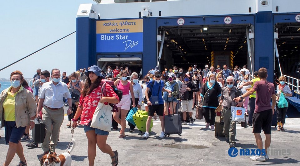 Το αδιαχώρητο δημιουργείται στη Νάξο τις τελευταίες ημέρες με αφίξεις τουριστών για τις καλοκαιρινές διακοπές.