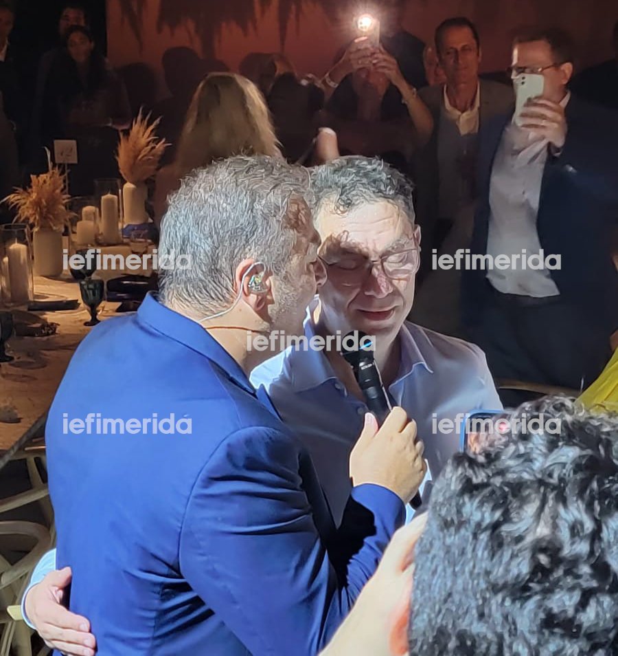 Αρχικά άρχισε να χορεύει με την παρέα του και λίγο αργότερα ακολούθησε ένα απροσδόκητο ντουέτο με τον Αντώνη Ρέμο που κατέβηκε στο τραπέζι του. Έκπληκτοι οι καλεσμένοι τους παρακολουθούσαν να ερμηνεύουν μαζί το εμβληματικό falling in love του Έλβις Πρίσλευ.