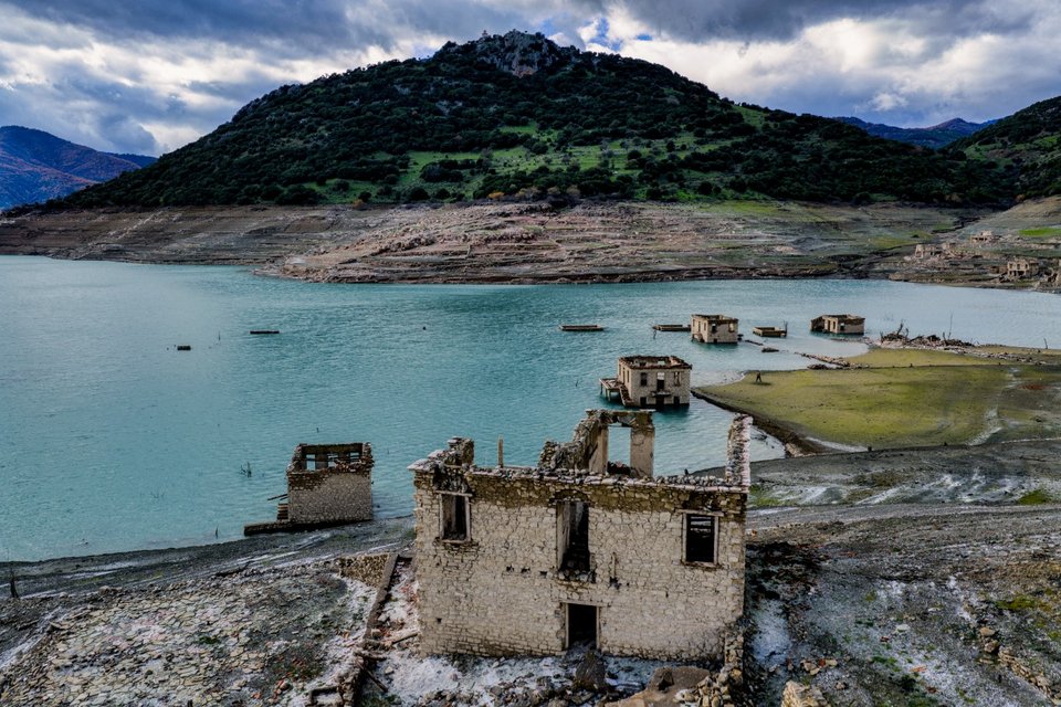 Παρά τις πρόσφατες βροχοπτώσεις και την αύξηση των αποθεμάτων νερού, η κατάσταση παραμένει δύσκολη, όπως αποτυπώνεται και στο φωτορεπορτάζ του Αντώνη Νικολόπουλου για το πρακτορείο Eurokinissi. Τα σημάδια της λειψυδρίας είναι ακόμη εμφανή, κάτι που μαρτυρά και το χωριό Κάλλιο, το οποίο τα τελευταία χρόνια έχει αναδυθεί ξανά από τα νερά του μεγαλύτερου ταμιευτήρα που υδροδοτεί την Αττική.