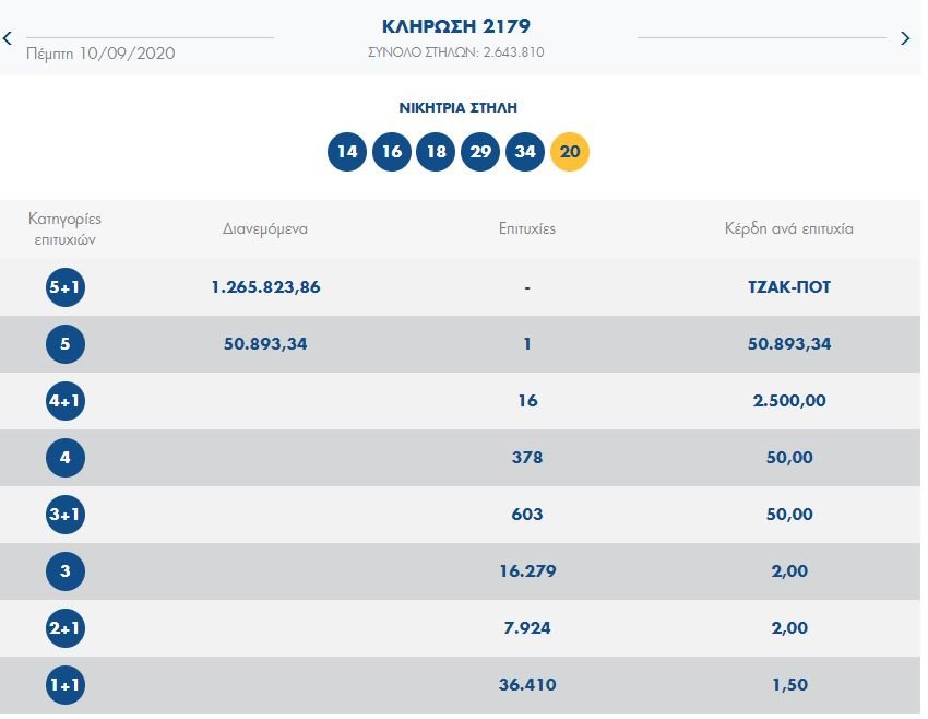 14, 16, 18, 29, 34 και αριθμός Τζόκερ το 20