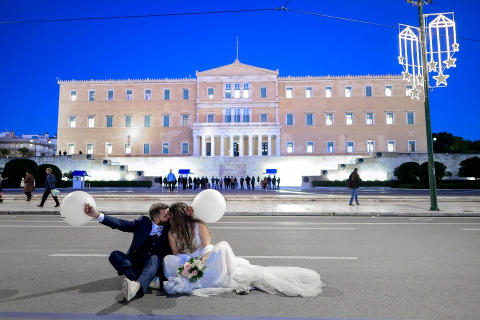 Ο έρωτας δεν κρύβεται... Ένα νεόνυμφο ζευγάρι βγήκε για φωτογράφιση στο χριστουγεννιάτικα στολισμένο Σύνταγμα και έκλεψε την παράσταση!