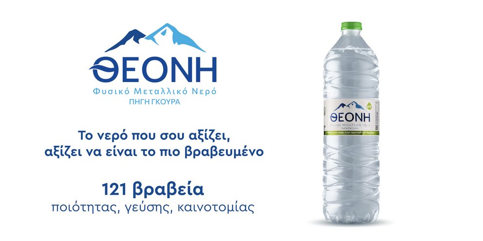 Με δύο ακόμα σημαντικές διακρίσεις ξεκίνησε και το 2024 για το Φυσικό Μεταλλικό Νερό ΘΕΟΝΗ που ξεχώρισε ανάμεσα σε παγκοσμίου φήμης προϊόντα για την άριστη ποιότητα και γεύση του στον παγκόσμιο διαγωνισμό Berkeley Springs Awards, τη δημοφιλέστερη και μακροβιότερη διοργάνωση γευσιγνωσίας νερού στον κόσμο.