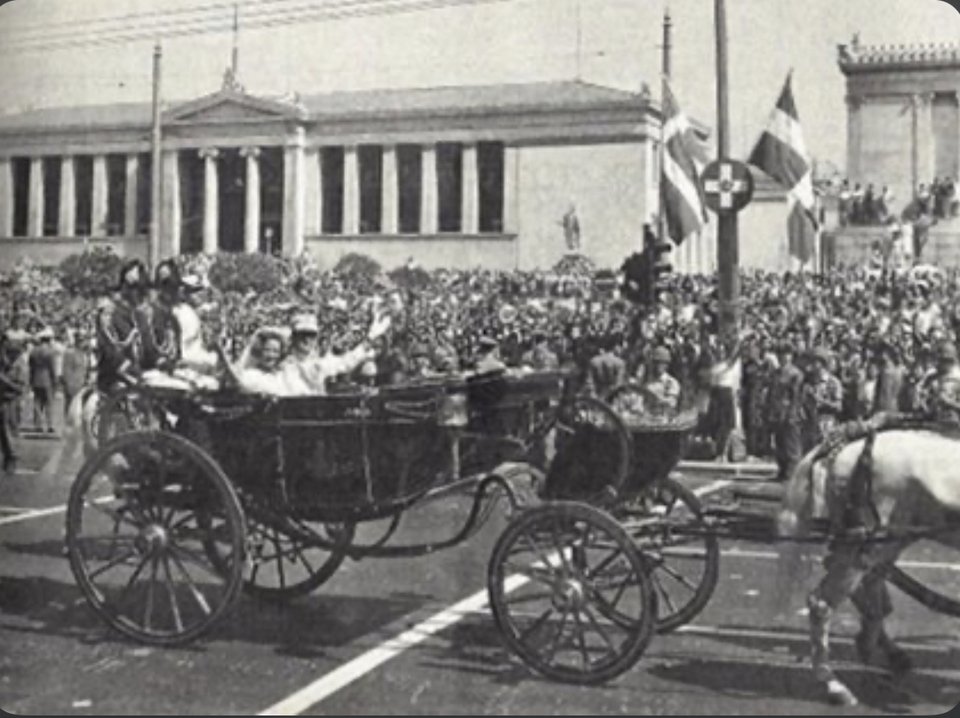 ΟΙ ΙΠΠΕΙΣ πέρασαν από τούς ίδιους δρόμους που θ’ ακολουθήσουν και την ημέρα των γάμων. Την βασιλική άμαξα αντικαθιστούσε μια μπλε-κόκκινη καρότσα, και τον Βασιλέα με την "Αννα - Μαρία δυο... στρατιώτες!