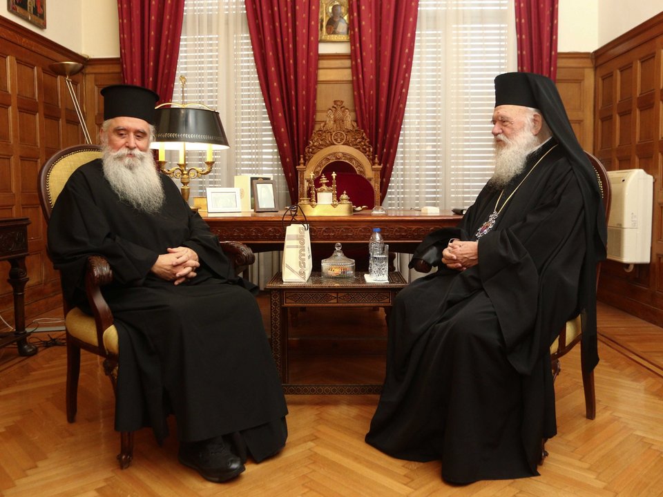 O νέος Αρχιεπίσκοπος Σινά, Φαράν και Ραϊθώ και Ηγούμενος της ιστορικής Μονής της Αγίας Αικατερίνης του Θεοβαδίστου Όρους Σινά κ. Συμεών, επισκέφθηκε μετά την Χειροτονία του, τον Αρχιεπίσκοπο Αθηνών και πάσης Ελλάδος κ. Ιερώνυμο.