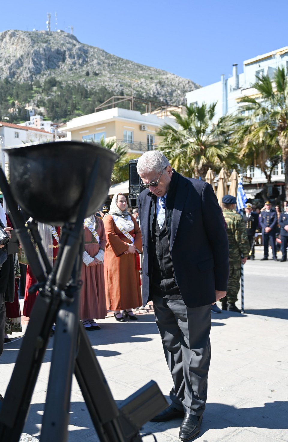 Ακολούθως μετέβη στο Ηρώο των Πεσόντων, όπου πραγματοποιήθηκε επιμνημόσυνη δέηση, εκφωνήθηκε ο πανηγυρικός της ημέρας και ακολούθησε η κατάθεση στεφάνων. Ο Γ.Γ. του Υπουργείου Εθνικής Άμυνας παρακολούθησε στη συνέχεια την παρέλαση σχολικών και στρατιωτικών τμημάτων, όπως και πολιτιστικών συλλόγων.