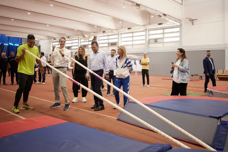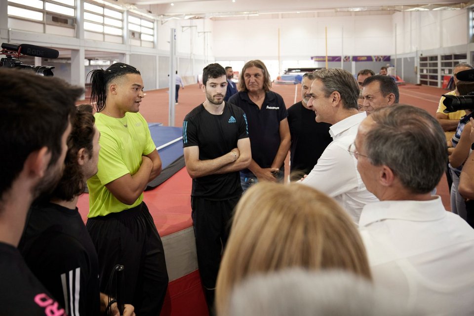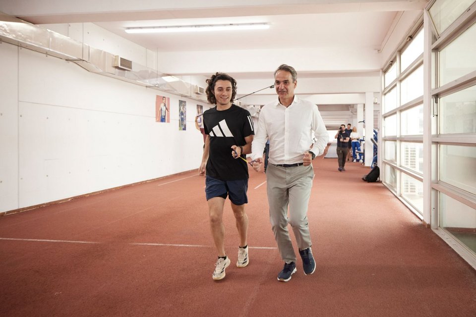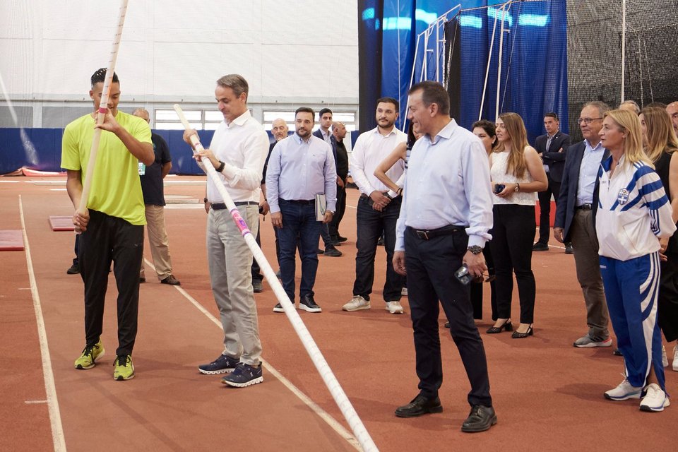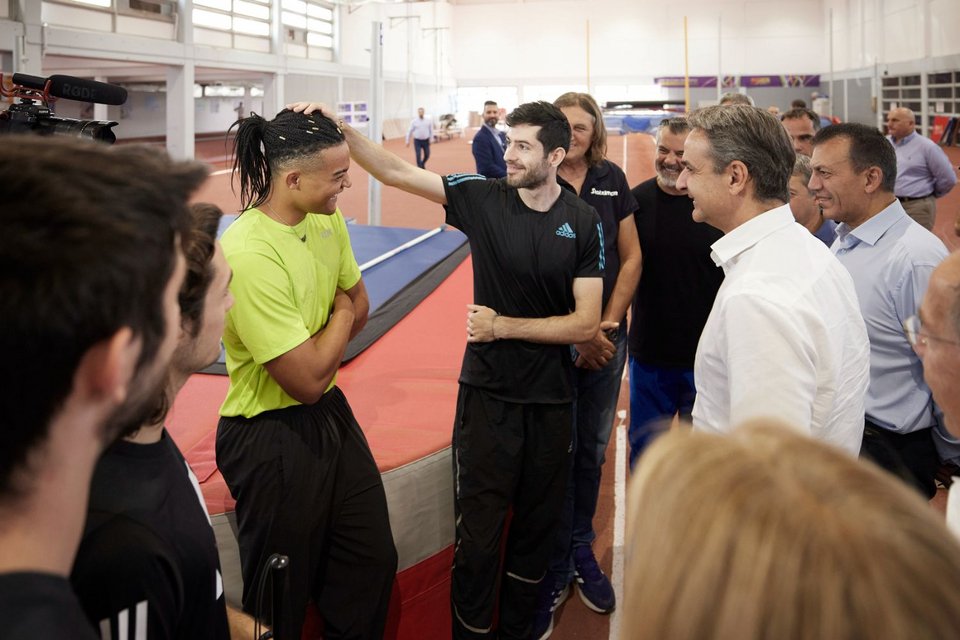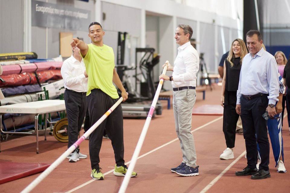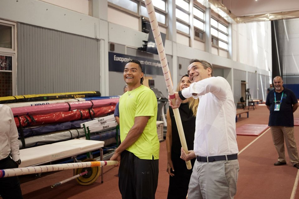 Μάλιστα ο κ. Μητσοτάκης άκουσε προσεκτικά τον «χάλκινο» παγκόσμιο πρωταθλητή για τις δυσκολίες του επί κοντώ, ενώ ο Καραλής έδειξε στον Κ. Μητσοτάκη πως κρατούν το κοντάρι οι αθλητές.