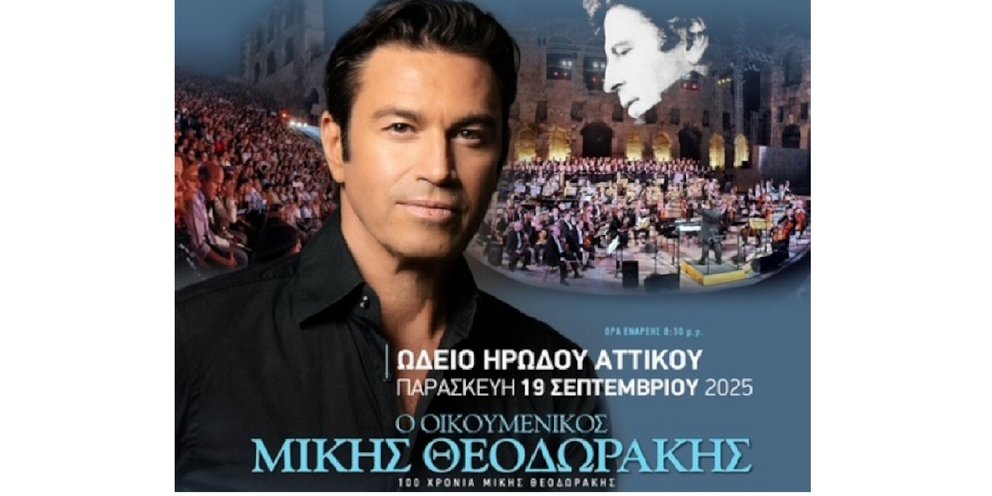Η οικουμενική εμβέλεια και ο παγκόσμιος θρίαμβος της μουσικής του Μίκη Θεοδωράκη θα ηχήσουν σε μια μαγευτική μουσική παράσταση, την Παρασκευή 19 Σεπτεμβρίου, στο μεγαλοπρεπές Ωδείο Ηρώδου Αττικου, κάτω από το φως της Ακρόπολης.
