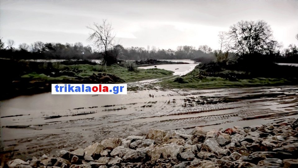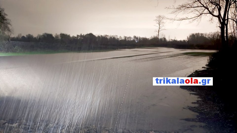 Ο Πηνειός ποταμός, κατεβάζοντας τεράστιο όγκο νερού από την κακοκαιρία, έχει υπερχειλίσει από τη βασική κοίτη εντός των μεγάλων αναχωμάτων του Βαλομανδρίου και των Ρογκίων και διαχέεται στα χωράφια.