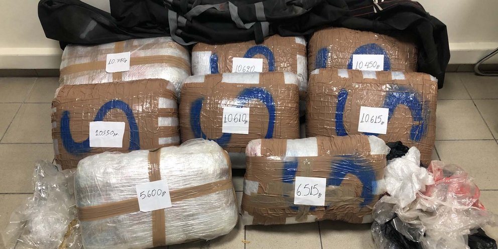 Σε έρευνα που ακολούθησε σε δύο οικήματα όπου φαίνεται να διέμεναν, εντός περιφραγμένου οικόπεδο, στη Βαρυμπόμπη, κατασχέθηκαν -μεταξύ άλλων- 17 δέματα κάνναβης συνολικού βάρους 80 κιλών και 422 γραμμαρίων, ποσότητα κοκαΐνης, εξοπλισμός για την υδροπονική καλλιέργεια κάνναβης, υλικά συσκευασίας, δύο ηλεκτρονικές ζυγαριές ακρίβειας κ.ά.