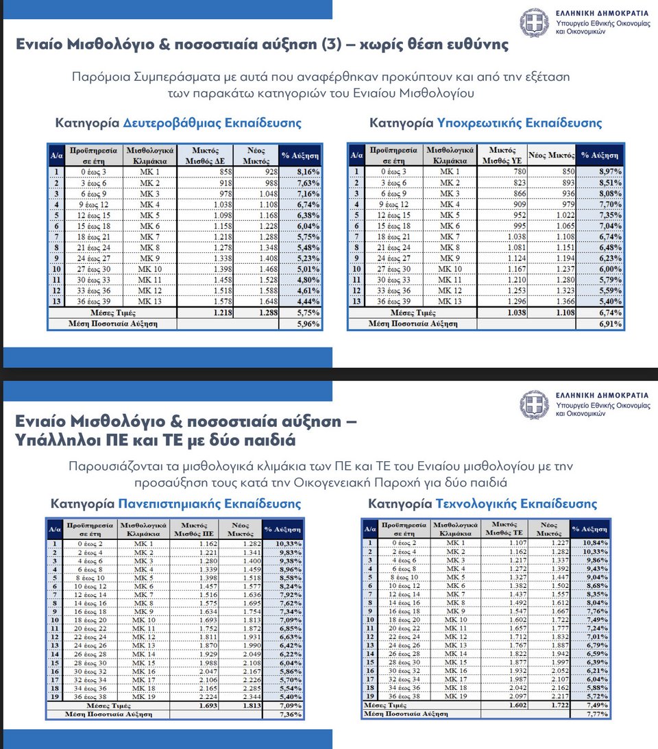 Παραδείγματα για τις αυξήσεις στους δημοσίους υπαλλήλους