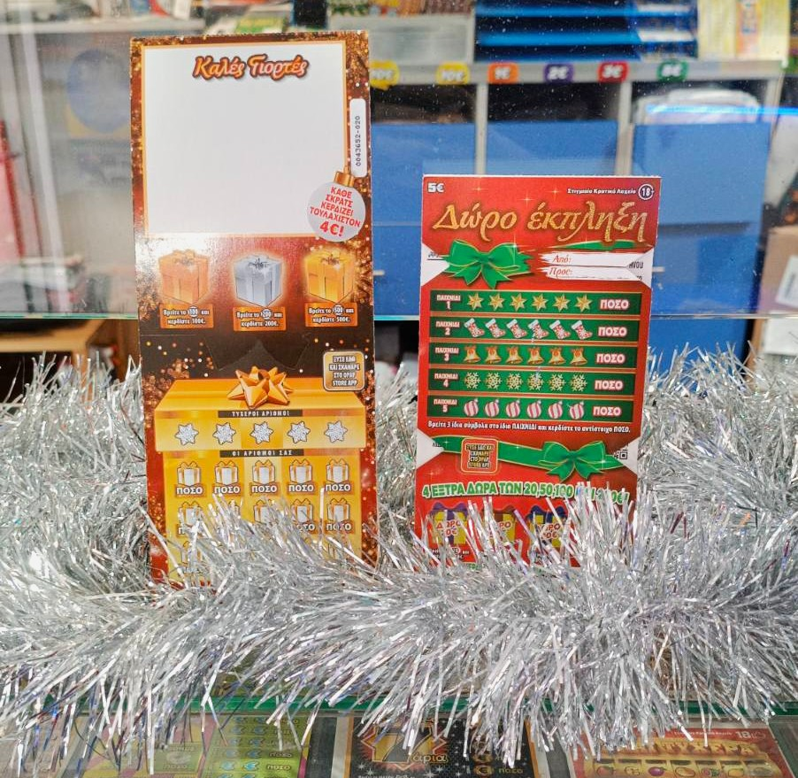 «Το παιχνίδι «ΔΩΡΟ ΣΚΡΑΤΣ» κοστίζει 10 ευρώ, με το μέγιστο έπαθλο που μπορεί να διεκδικήσει κάποιος να ανέρχεται σε 100.000 ευρώ. Κάθε λαχνός κερδίζει τουλάχιστον 4 ευρώ, ενώ διαθέτει ειδική περιοχή για ευχές και 3 περιοχές bonus. Το ΣΚΡΑΤΣ «ΔΩΡΟ ΕΚΠΛΗΞΗ» κοστίζει 5 ευρώ, μοιράζει μέχρι και 100.000 ευρώ, ενώ οι παίκτες έχουν 9 ευκαιρίες για κέρδη», συμπληρώνει.