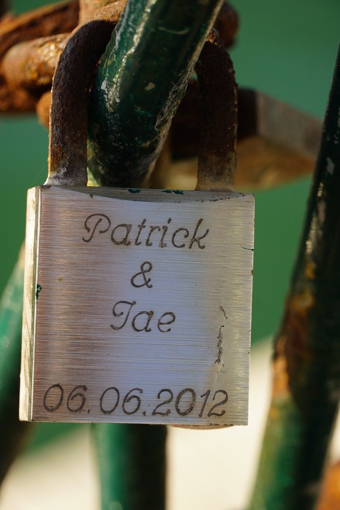Σε μια ασημένια καρδιά διαβάζουμε την υπόσχεση "Για Πάντα" και σε μια άλλη "Κ+Γ #26". Άλλη μια κόκκινη κλειδαριά, σκουριασμένη αλλά εντυπωσιακή, φιλοξενεί μια χαραγμένη καρδιά και τα αρχικά "S" και "G".
