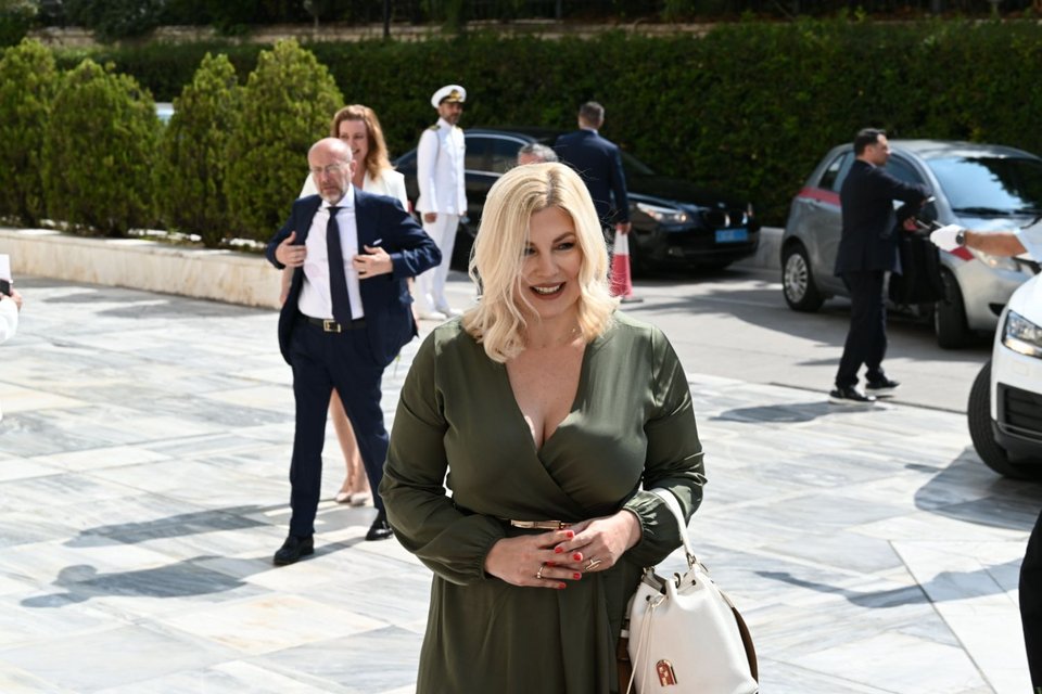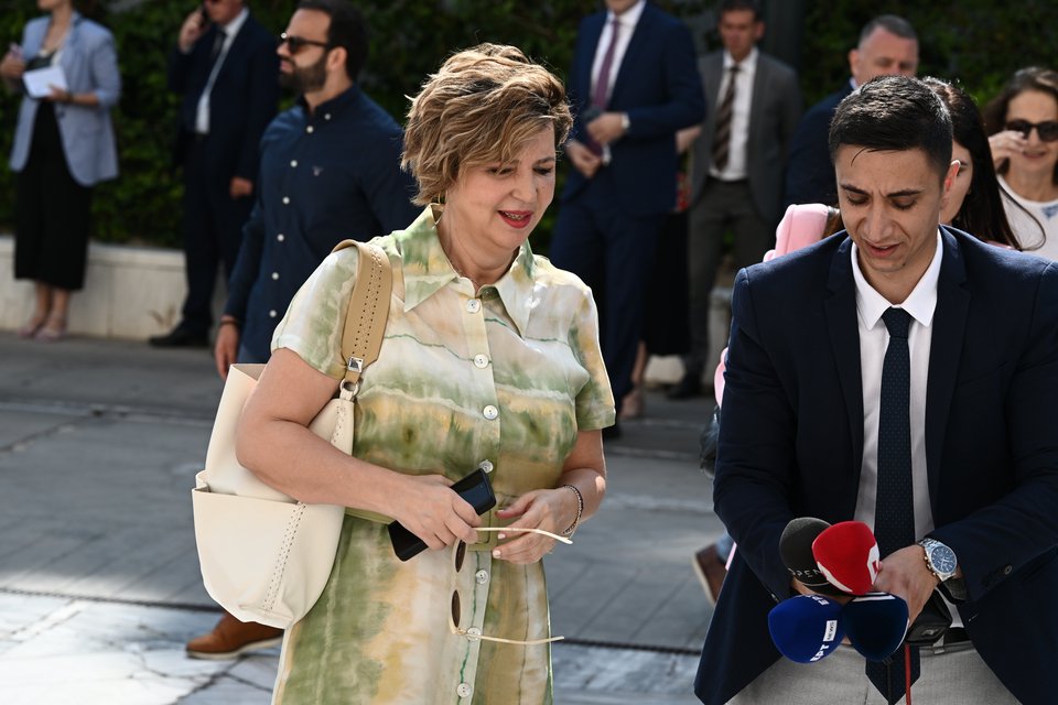 Η Ντόρα Μπακογιάννη χαιρέτησε όλους τους πολιτικούς αρχηγούς (εδώ με τον Νίκο Ανδρουλάκη)