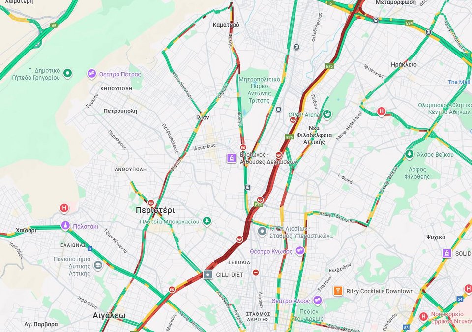Παράλληλα, λόγω της βροχόπτωσης και σε συνδυασμό με τα τροχαία που έχουν σημειωθεί τις πρώτες πρωινές ώρες στον Κηφισό, έχει δημιουργηθεί μποτιλιάρισμα χιλιομέτρων από το ύψος της Μεταμόρφωσης μέχρι και το Αιγάλεω στο ρεύμα καθόδου προς Πειραιά.