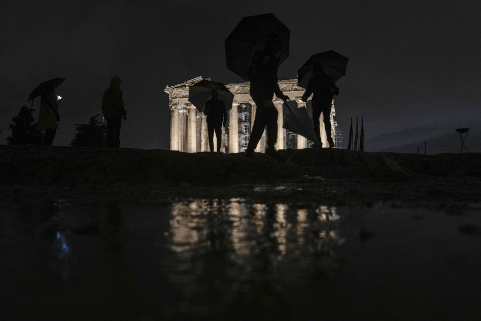 Κατά τη διάρκεια μιας ανάπαυλας από την βραδινή βροχή αργά χθες το βράδυ, ο Έλληνας πρωταθλητής των 400 μ. Με εμπόδια Περικλής Ιακωβάκης άναψε έναν βωμό μπροστά από τον ηλικίας 2.500 ετών ναό του Παρθενώνα, στην ακρόπολη που δεσπόζει στον ορίζοντα της Αθήνας και αποτελεί το κορυφαίο τουριστικό αξιοθέατο της Ελλάδας, σημειώνει το Associated Press.