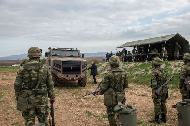 Η εκδήλωση παρουσίασης του Τροχοφόρου Τεθωρακισμένου 4χ4 HOPLITE της EODH πραγματοποιήθηκε στην έδρα της 34ΜΚ Ταξιαρχίας ΠΖ στο στρατόπεδο “ΕΠΙΛΑΡΧΟΥ ΠΡΟΚΟΠΙΔΗ ΘΩΜΑ” που βρίσκεται στην Άσσηρο Θεσσαλονίκης. Στη διάρκεια της, οι επιτελείς ενημερώθηκαν για τα Τεχνικά και Επιχειρησιακά χαρακτηριστικά του οχήματος, καθώς και για τις ειδικοποιημένες εκδόσεις που έχει αναπτύξει η εταιρεία όπως, η έκδοση μεταφοράς όλμου 81 ή 120mm, η αντιαρματική έκδοση με πυροβόλο 20mm και μονό ή διπλό Α/Τ εκτοξευτή πυραύλων SPIKE LR, η έκδοση Διοικήσεως που μπορεί να φιλοξενήσει πολλαπλούς σταθμούς Επικοινωνιών και Τερματικό του ΣΔΕ ΗΝΙΟΧΟΣ, η έκδοση Προωθημένου παρατηρητή ΠΒ, η έκδοση μεταφοράς του Α/Τ συστήματος SPIKE N-LOS, η έκδοση Ασθενοφόρου κλπ.