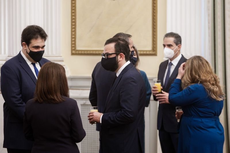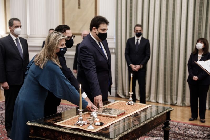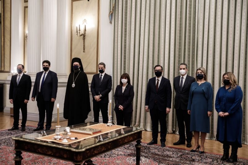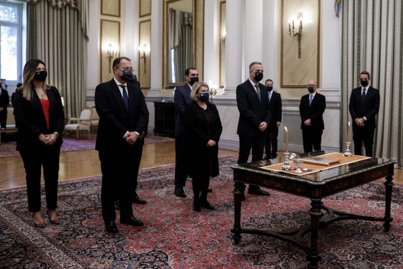 Φυσικά, όλοι τους φορούσαν μάσκες και τηρούνταν οι αποστάσεις. Καμία χειραψία, αγκαλιά, φιλί και φυσικά κανένας συγγενής ή φίλος στο πλευρό των υπουργών που ορκίστηκαν.